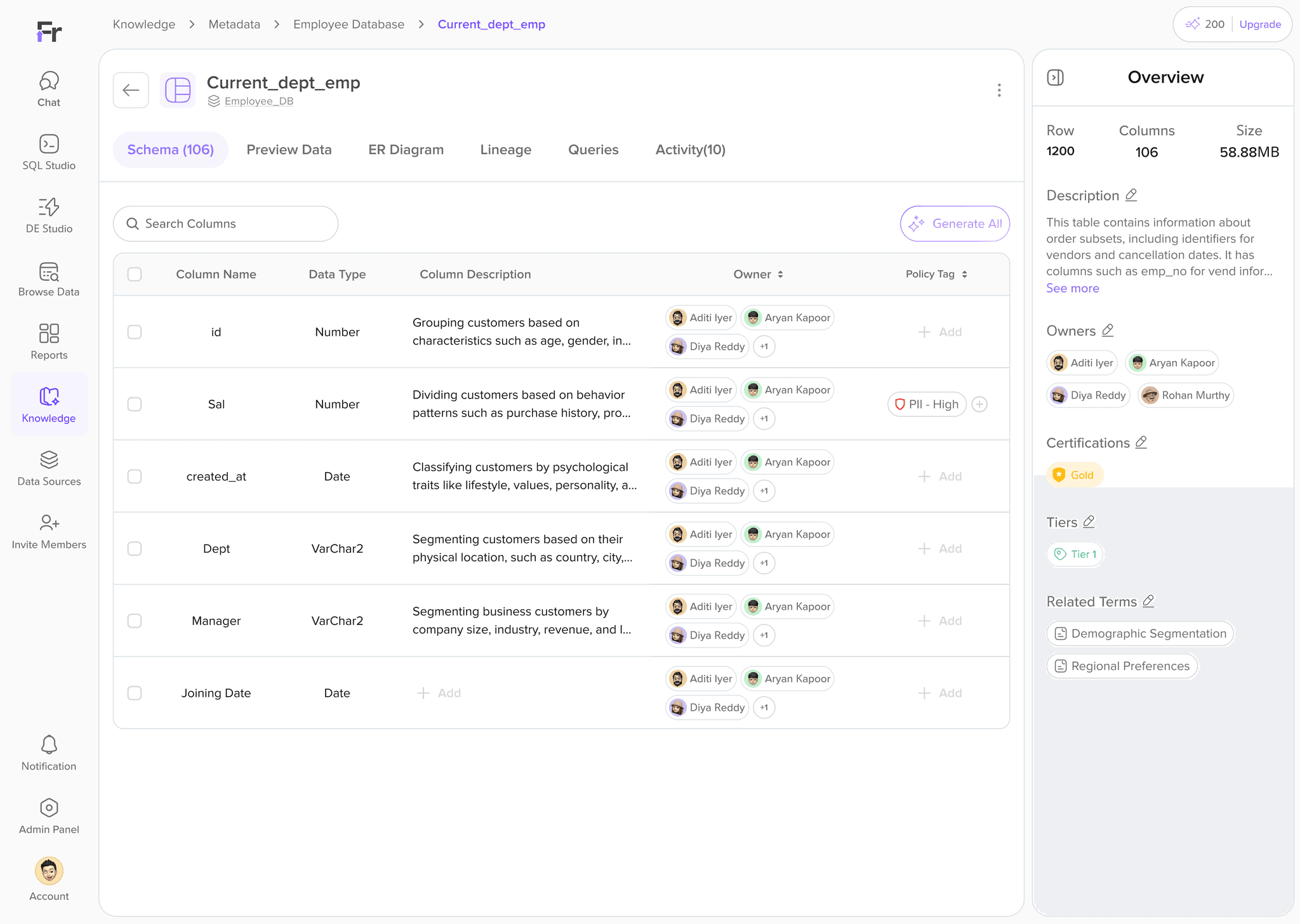 Next, we designed metadata for each table and column, giving the AI explicit context of the datasource and entities.What worked: Human-authored metadata dramatically improved AI query accuracy.